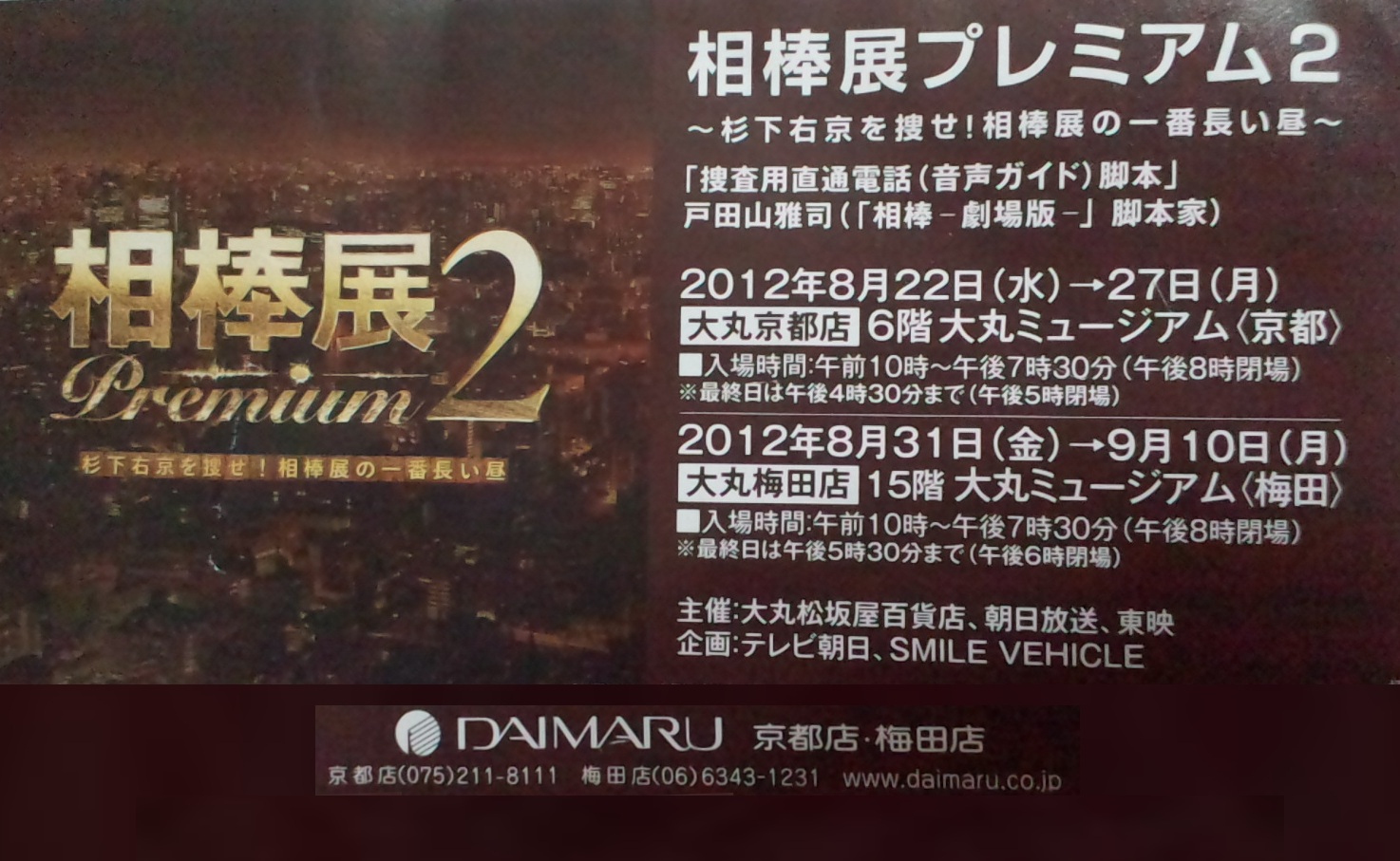 「相棒展プレミアム2」の無料招待券が手に入ったので行ってきました。