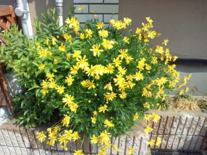勝手に「名前忘れ」と呼んでいる黄色い花が満開でした。